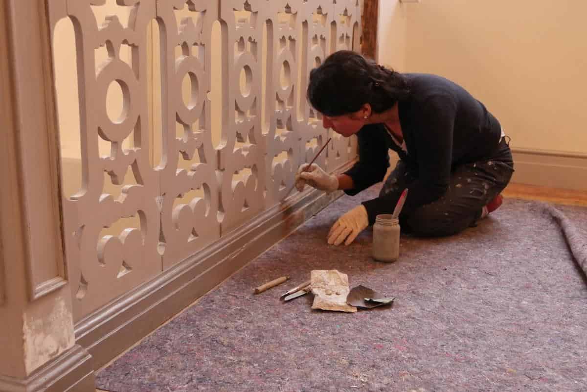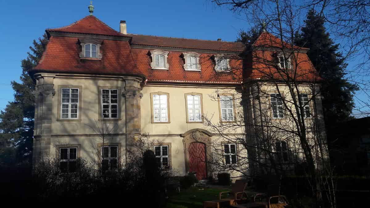 Entstanden ist dabei ein Kleinod, in dem man sehr gut wohnen, sich aber auch künstlerischen Dingen widmen kann. Dabei mussten, da das Haus in den letzten 300 Jahren den unterschiedlichsten Zwecken gedient hatte (unter anderen als Gärtnerei, Bäckerei und Gasthaus) ganze Wagenladungen an Schutt aus dem Haus herausgetragen und entsorgt werden, um so etwas wie den Urzustand wiederherzustellen. Was an historischer Bausubstanz da war wurde, soweit möglich, gerettet und wiederverwendet, wo dies nicht machbar war, wurde versucht historisierenden Ersatz zu beschaffen, wie etwa bei der rückwärtigen Ausgangstür im Erdgeschoss, der barocke Türen aus Bamberg als Vorbild gedient haben. Bei der Treppe zum Obergeschoss handelt es sich tatsächlich noch um das von Balthasar Neumann eingebaute Original, bei der Restaurierung mussten lediglich einige Stellen ergänzt werden, aber selbst hierfür haben die Bauherrin und der Bauherr historisches Holz verwendet. Wie übrigens weitestgehend im ganzen Haus nur historische Baumaterialen verwendet wurden, bis hin zur Leinölfarbe mit Pigmenten.