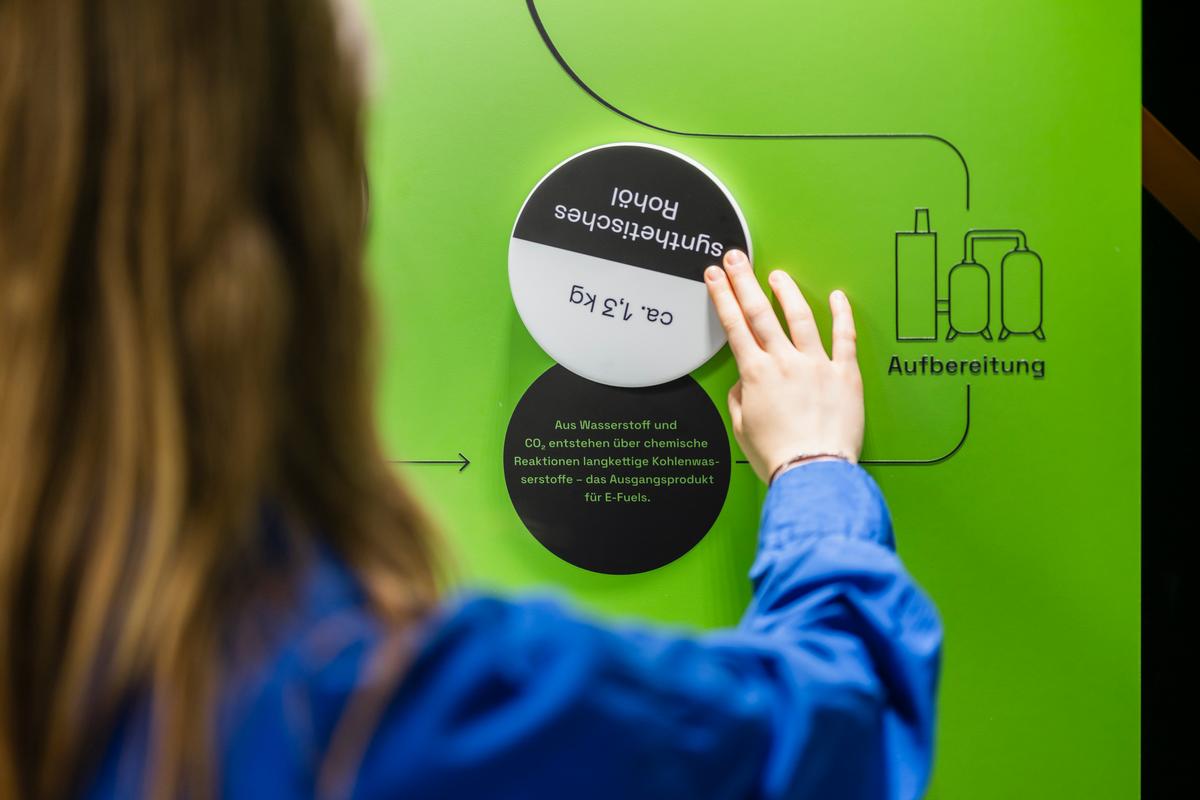 Mit interaktiven Exponaten und Medienstationen zeigt die Ausstellung verschiedene Wege für die Energiewende in Industrie, Wirtschaft und Verkehr auf. Besuchende gehen mit Forscherinnen und Forschern auf „Mission Energiewende“ und lernen Herausforderungen und Lösungen kennen. Die vier Themenbereiche der Ausstellung zeigen, wie eine Versorgung mit Energie und Rohstoffen ohne fossile Energieträger wie Erdöl, Erdgas und Kohle funktionieren kann. Dabei werden unterschiedliche Lösungsansätze aus der Forschung präsentiert. Die Exponate erklären beispielsweise, wie die Industrie ihre Prozesse klimafreundlich gestalten kann oder wie unvermeidbare CO₂-Emissionen sinnvoll genutzt und weiterverwendet werden können – etwa als Rohstoffe für Medikamente oder Socken. Außerdem geht es um klimaneutrale Kraftstoffe: Die Ausstellung erklärt unter anderem, wie E-Fuels hergestellt werden und welche Potenziale sie für den Verkehr haben.