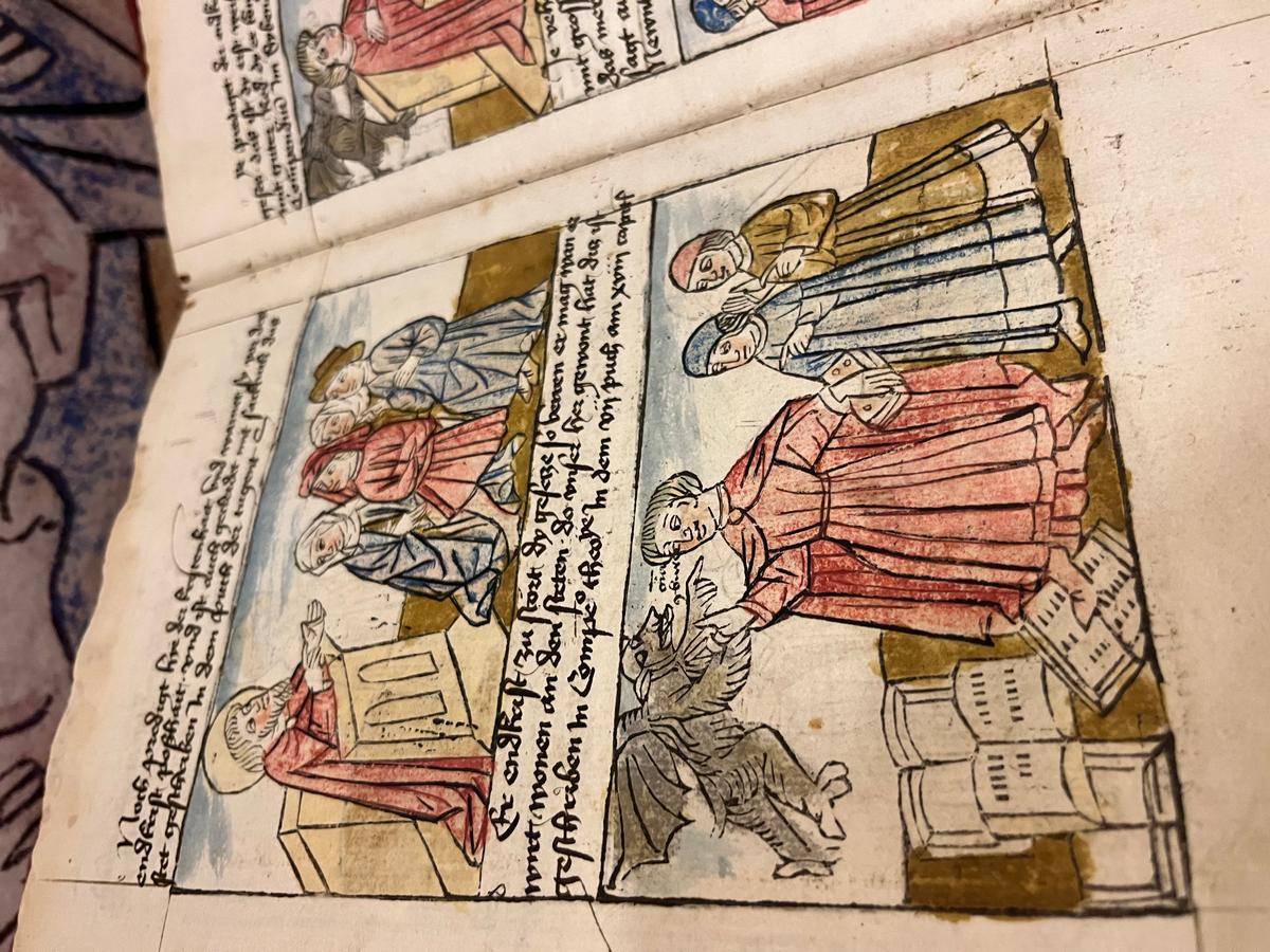 Zu den Höhepunkten des neuen Rundgangs zählt das Blockbuch „Der Antichrist“ aus der Zeit um 1450. Es steht exemplarisch für die Revolution, die Gutenbergs Erfindung des Buchdrucks einleitete, durch die Wissen erstmals einer breiten Bevölkerungsschicht zugänglich wurde. In der Ausstellung wird anhand von Exponaten wie Molitors Hexen-Traktat aber auch deutlich, dass die technischen Fortschritte des Buchdrucks immer zugleich einer Ambivalenz unterlagen: Während sie Aufklärung förderten, boten sie auch ein Medium für Fehlinformation und Hetze – ein Thema, das heute wieder besondere Aktualität besitzt.