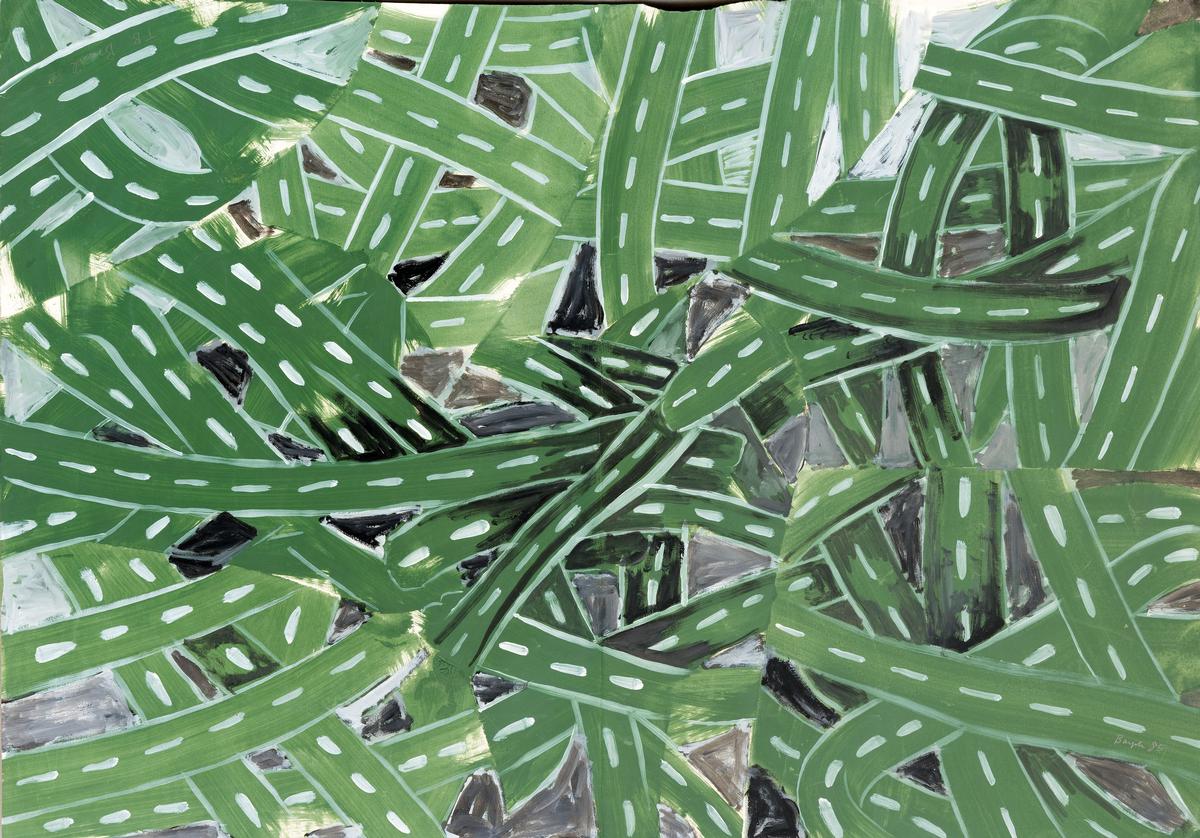 Die Ausstellung verknüpft diese Arbeiten bewusst mit der Topografie und Stadtgeschichte Würzburgs nach 1945. Kaum eine andere Stadt bündelt die zentralen Diskurse um autogerechte Stadt, Verdichtung und Stadt-Land-Gefälle so konzentriert wie Würzburg. Bayrles Kunst fungiert hier als ästhetisches Brennglas: Seine Bildwelten machen sichtbar, wie Mobilität, Wiederholung und Massenbewegung das Leben formen und strukturieren.