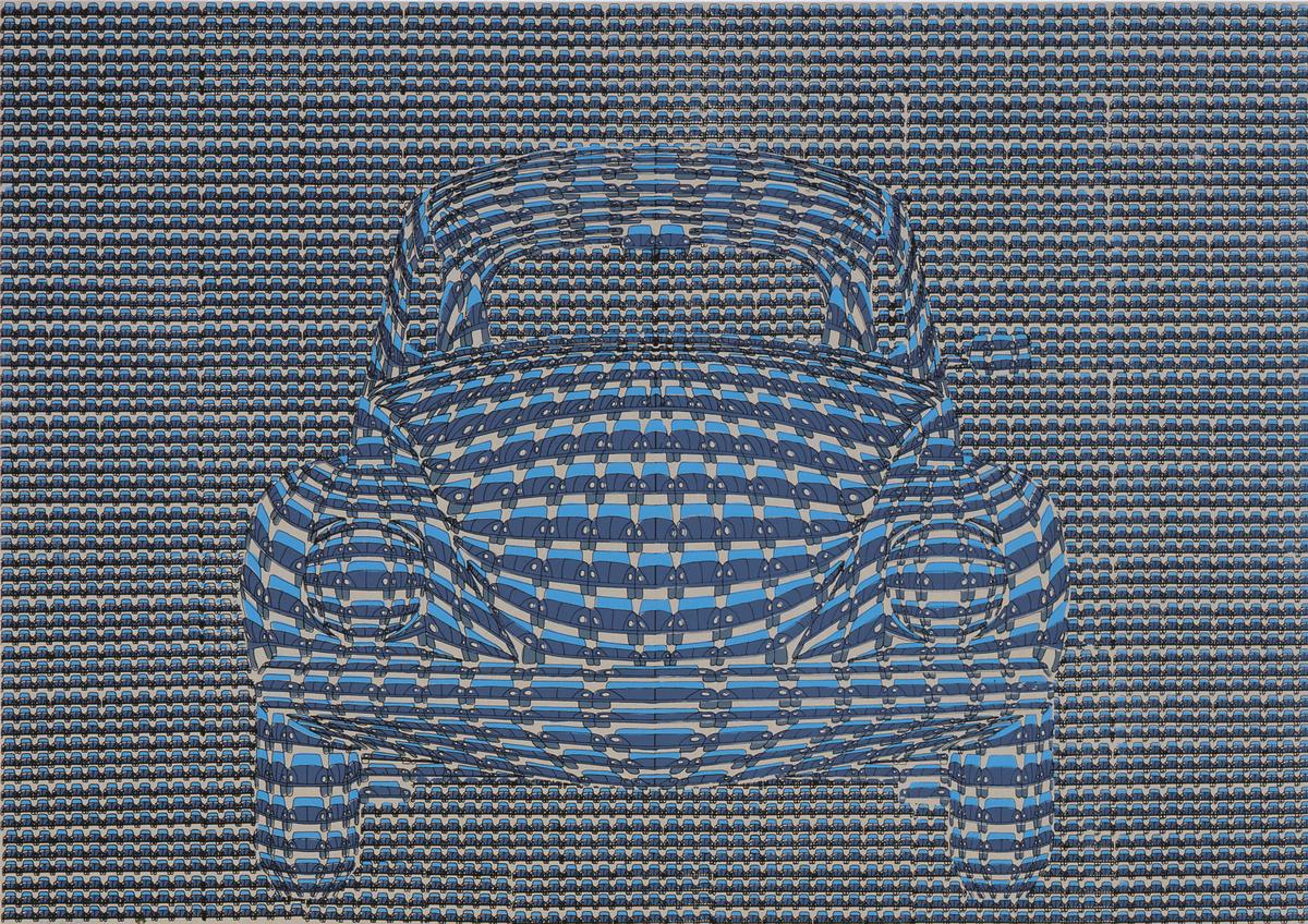 Thomas Bayrle/ VW Käfer (blaue Version), 1969/ Courtesy Thomas Bayrle und neugerriemschneider Berlin, Foto © VG Bild-Kunst Bonn 2026, Foto: Wolfgang Günzel