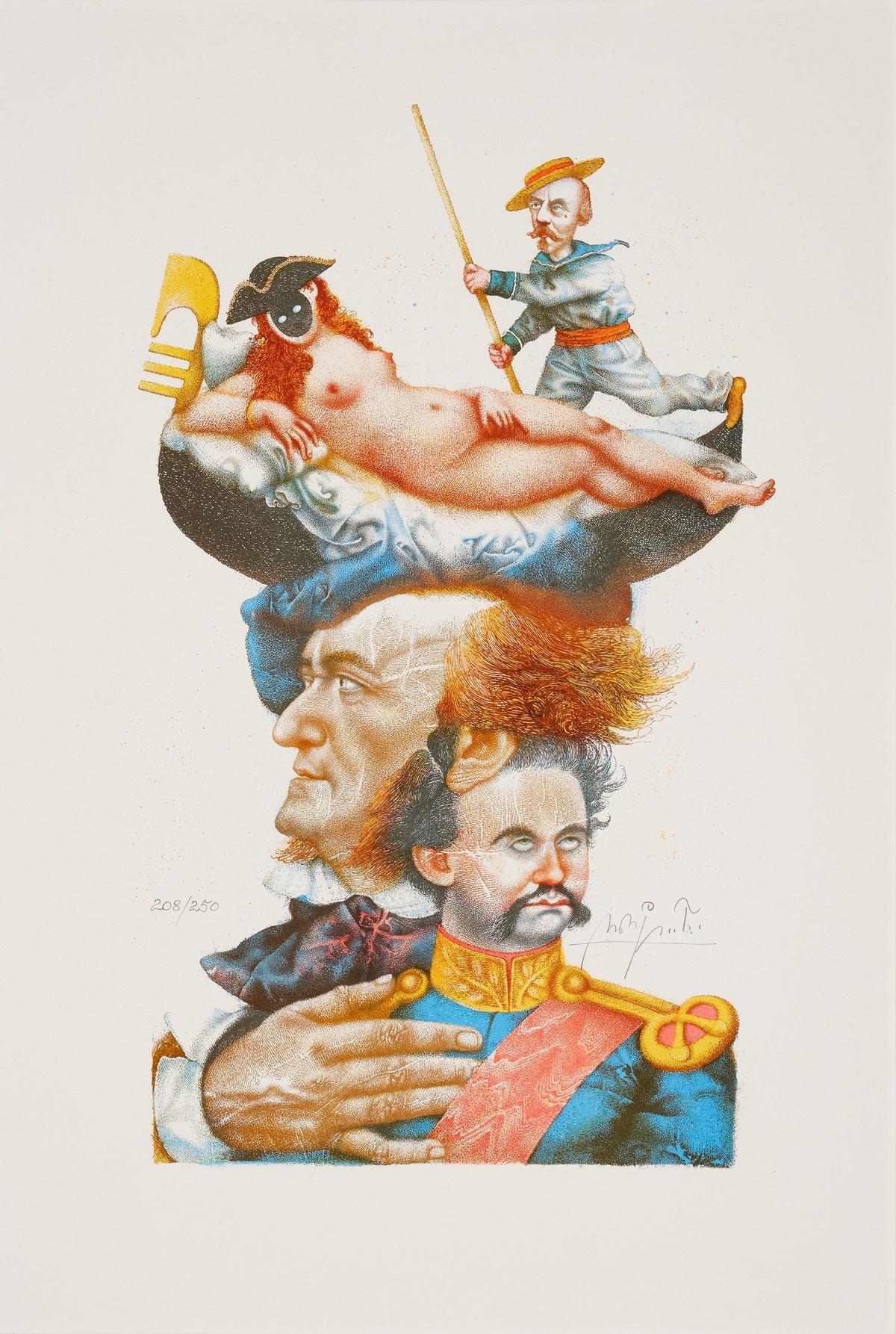 Im Zentrum steht die sogenannte „Denkmalerei“ – Porträts, die weniger repräsentieren als interpretieren. Ob der langjährige Direktor der Kunstsammlungen Wilhelm Schwemmer oder der Schriftsteller und Ehrenbürger Hermann Kesten: Prechtl erfasst Physiognomie als geistige Signatur. Zugleich wird seine künstlerische Herkunft sichtbar – die Auseinandersetzung mit Rembrandt ebenso wie seine literarischen Bildwelten, etwa in den Illustrationen zu Tolstois „Wieviel Erde braucht der Mensch?“.