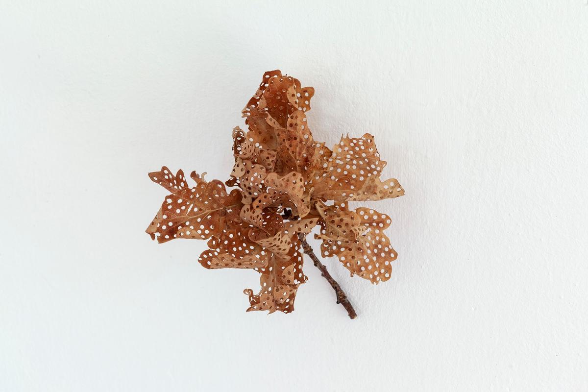 In kongenialer Ergänzung arbeitet Trude Friedrich mit Holz, Laub und Ästen. Ihre geschnitzten Blätter mit Intarsien und eingearbeiteten Wörtern, ihre abstrakten Formationen aus bearbeitetem Naturmaterial öffnen einen Raum der Konzentration. Beiläufige Sujets – Gräser, Zäune, Gitter – gewinnen eine stille Präsenz. In der sensiblen Bearbeitung wird die Fragilität der Natur ebenso sichtbar wie ihre formale Strenge.
