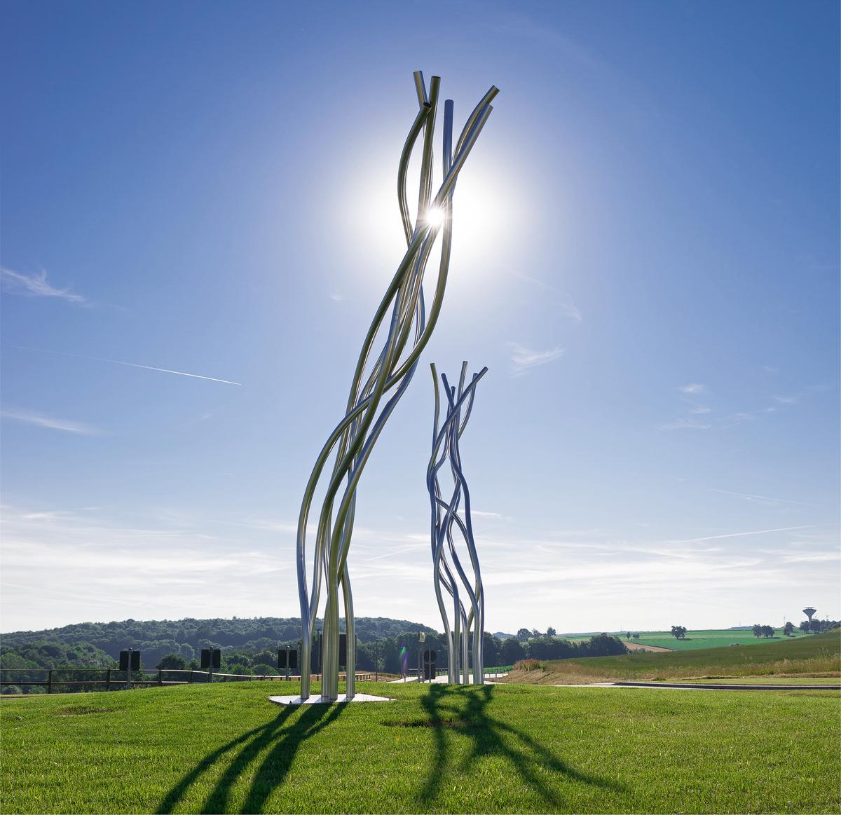 Gertrude Reum, Aufstieg, 1997 und Aufwärts, 1997, Chromnickelstahl, je 600 cm hoch, Sammlung Würth, Inv. 4702 und 4703, Foto © Peter Petter