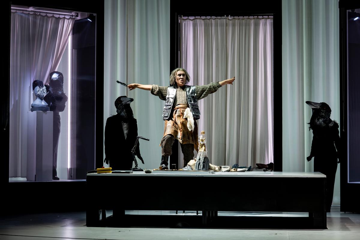 Giulia Giammona (Regie) hat eine sehr gradlinige, schnörkellose Inszenierung auf die Beine gestellt, in der es keine unnötigen Verrätselungen gibt (sieht man einmal von den Unheil andeutenden Rabenfiguren ab). Dafür sind eine durchdachte Dramaturgie, Personenführung und Choreographie (Matthias Heilmann und Alessandra Bareggi) konstitutiv.